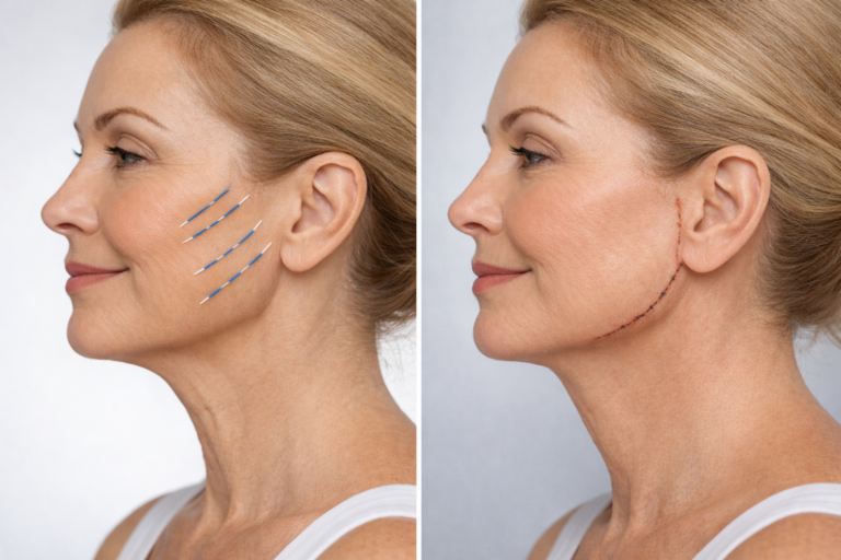 Fios de Sustentação (PDO) resolvem a flacidez? Saiba quando o lifting cirúrgico (Cervicoplastia) é a melhor opção.